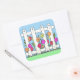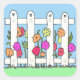 Los pegatinas florales son bonitos y cuentan con una valla blanca de piquetes sobre un fondo azul del cielo, con flores de jardín mirando a través. Se muestra en tamaño grande de 3 pulgadas pero también se presenta en una versión más pequeña. Dales como pequeños regalos.