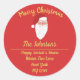 Dirección Santa roja pegatinas con el guión curvo dorado "Feliz Navidad" y texto personalizado.