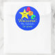 Una estrella amarilla sonriente con ABC es una bienvenida divertida para el pegatina escolar. Utilice la plantilla proporcionada para agregar su nombre y grado. Arte y diseño originales de Anura Design Studio 2009