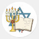 Este diseño es la estrella de david. La estrella tiene un portavelas delante y un libro con pasaje. Esta estrella del diseño de david se ve genial en estos Pegatinas