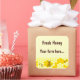 Etiquetas de Personalizado de miel de abeja de miel con arte de abejas zumbando en un peine de miel de oro. Hay espacio para el nombre de su producto y su nombre en letra manuscrita amigable en letras marrones. Este diseño es perfecto para apicultores o artesanos para añadir un toque personal a jabones personalizados, velas o recetas. Haga clic en Personalizar para cambiar fuentes, dimensionar, agregar o quitar texto, cambiar los colores de fondo, incluso guardar el diseño personalizado para más adelante.