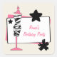 Un pegatina de la fiesta de cumpleaños que ofrece un ilustracion de una forma rosada del vestido que lleva un vestido del estampado de zebra. Personalice el texto. Busque las invitaciones a juego de la fiesta de cumpleaños en Paperie de Jill.