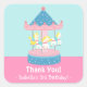 Decoren las bolsas de regalo o los favores de fiesta con estos pegatinas coloridos que tienen un carrusel con caballos blancos dando vueltas y vueltas. Dulce y linda fabulosa para una fiesta de cumpleaños temática de carnaval, carrusel o carnaval. La paleta de colores de tonos rosa y azul lo hace más adecuado para los chicas de cumpleaños. Añade tu mensaje de agradecimiento en el espacio disponible.