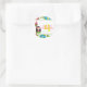 Este pegatina de la fiesta de cumpleaños del chica tiene un diseño chica luau hula tropical. El borde está lleno de flores rosas, azules y blancas. Hay un chica de pelo negro junto a una antorcha de tiki. Puede personalizar fácilmente la información de su fiesta en el lado derecho. com