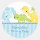 Este pegatina de la fiesta de cumpleaños de los chicos tiene un lindo tema de dinosaurios. Una hoja de palmera tiene tres dinosaurios en la parte superior. Puede personalizar fácilmente la información de su fiesta en la parte inferior. Cocoa Studio com