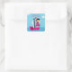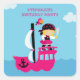¡Esta fiesta de cumpleaños de chicas favorece al pegatina cuadrado tiene un tema pirata rosado! Hay un pirata rubio que navega en su barco pirata con un loro rosa volando alrededor de su cabeza. En la parte superior, puedes fácilmente personalizar que el nombre del chica de cumpleaños. Gráficos de Zenware Designs en Mygrafico