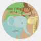 Para una ducha de bebé con temática de jungla o zoológico, acá hay pegatinas para las caritas de comida para llevar.