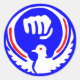 Un puño de artes marciales y un símbolo de paloma de la paz se representan en vivos tonos de rojo y azul en estos pegatinas en tu elección de tamaños. Dé a los pegatinas de artes marciales a los estudiantes de Karate o Tae Kwon Do para que los reconozcan, o úsalos para sellar los sobres de las invitaciones de la fiesta de cumpleaños de Artistas Marciales y tarjetas de agradecimiento.