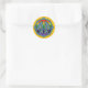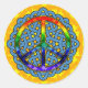 Símbolo de paz arcoiris con un patrón de nudos celta en el fondo.