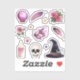 Pegatinas de la revista Witch gorra, cráneo, bola de cristal, cristal mágico, vela, plumas, rosas de té.