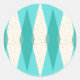 Estos modernos Pegatinas de la Ronda Argyle de mediados del siglo XX cuentan con un fondo vibrante y turquesa y un patrón de diamantes verde azulados modernos y translúcidos sobre diamantes de color crema más grandes y vintage con especkles de edad espacial de color dorado. Este estilo minimalista de inspiración y deconstrucción es un retroceso simplista de la era atómica más grande que la vida que dominó el paisaje decorativo de los años 50 y 60. Este diseño kitsch recuerda a todo, desde las señales de la bolera de Palm Springs retro hasta las bandejas de televisión que usaste en la casa de tu abuela.