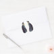 El diseño de estos Pegatinas redondos es un ilustracion de dos pingüinos del emperador antártico que se enfrentan entre sí. El emperador pingüino es similar al pingüino rey. En el Emperador el naranja en la cara se mezcla en blanco. En el pingüino rey el naranja está separado del blanco con una franja de negro. Mano ilustrada con lápices de colores Derwent Water.