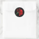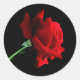 Pegatina redondo con fondo negro y una bella rosa roja. Personalizar este artículo o compra tal cual.