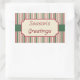 Festivas rayas rojas y verdes decoran estos pegatinas vacacionales de estilo vintage. El diseño es de arte original.