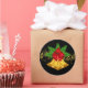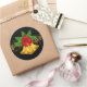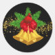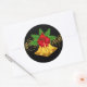 Este gran pegatina redondo de gran tamaño se muestra con un Navidad festivo campanas de oro de vacaciones y cardenal huella de pájaro. Personalizar este artículo o compra tal cual.