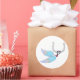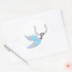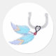 Obra de una herradura gris, una pequeña flor roja y plumas coloridas que parecen soplar en el viento, impresa en Pegatinas. — El trabajo está protegido por derechos de autor por la artista, Christina Spiegeland. — Copyright 2014.