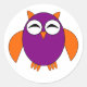 Esta hoja de pegatinas redondos presenta un búho lindo con los ojos cerrados como si estuviera durmiendo y unas garras lindas. Su cuerpo es morado y sus alas, orejas, garras y pico son naranjas. Este lindo búho es tan adorable que a los adultos les encantará tanto como a los niños.