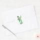 Una sábana de pegatinas con un Leprechaun irlandés sosteniendo un manojo de shamrock y con el pie sobre una olla de oro, de una acuarela pintada a mano por Judy Adamson. Un uso para estos pegatinas sería sellar los sobres de las tarjetas de felicitación e invitaciones coincidentes del Día de San Patricio.
