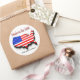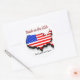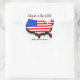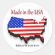 Pegatinas de la marca "made in USA" con una imagen 3D del continente estadounidense. Estrellas y rayas rojas, blancas y azules Personalizadas con tu texto.