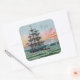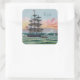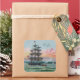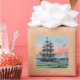 Esta imagen antigua muestra un barco elegante en plena navegación que sale del puerto. El cielo de colores azul y naranja es un complemento relajante del agua verde azul. Está listo para su personalización.