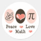 Un símbolo de paz, símbolo de corazón y pi en camisetas de Peace Love Math, té, vestimenta y más mercadería de amantes de matemáticas hacen un regalo lindo y de cadera para un profesor de matemáticas, profesor, matleta o matemático en el Día del Pi o la semana de la Apreciación del Profesor. Estudios, LLC.
