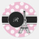 Pegatinas redondos de monograma rosa con puntos de polka y la Torre Eiffel que le darán una muestra de Francia. Agregue su nombre o iniciales esta moda y el elegante pegatina forma parte de la colección Pink Paris.