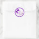 Este adorable pegatina es perfecto para sellos para sobres en invitaciones para bebés, invitaciones a la ducha, decoración fiesta y mucho más. El diseño presenta puntos de polka de bonito y una cinta en morado. It's a Girl!