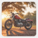 Estos pegatinas presentan una motocicleta en el país al amanecer.