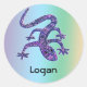 pegatinas de Guay con un colorido salamandra de lagarto morado y azul anfibio en coloridos pegatinas con tu nombre u otro texto. Se muestra el nombre editable Logan. Diseñado por 369MyName. #Lizard #Salamander #Amphibian