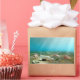 Un barco en una botella se hundió en las costas del océano, rodeado de conchas marinas e iluminado por rayos de luz solar.