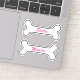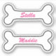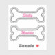Pegatina con huesos de perro con nombres de personalizable. Tipo de letra rosado y cursivo del guión. Puede mover el texto y cambiar el color, el tipo de letra y el tamaño del tipo de letra con la herramienta de diseño.