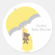 Pegatinas dulces y de moda con una futura madre embarazada sosteniendo un paraguas amarillo y un oso de peluche. Perfecto para las duchas neutras de género.
