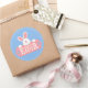 Pegatina de vacaciones de Pascua mostrado con una estampa de fiesta de Pascua. Color azul y rosa Personalizar o compra como está.