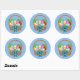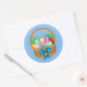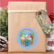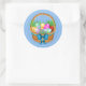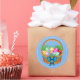 Pegatina de vacaciones de Pascua mostrado con una estampa festiva de la cesta de Pascua. Color azul Personalizar o compra como está.