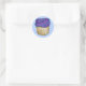 Los pegatinas cuentan con un original ilustracion acuático de un quequito esmerilado morado sobre un fondo azul.