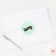 Navidades redondos pegatinas vacacionales con un fondo de menta pastel pálido y un pergamino negro que lee Paz y Amor con una flor de menta y decoración de viñas. Tenemos la tarjeta de foto de Floral Spray Peace and Love, franqueo y etiquetas de dirección de retorno.