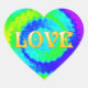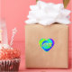 Estos pegatinas groovys tienen un psicodélico fondo de color arcoiris con la palabra "amor" en letras doradas.