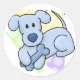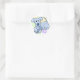 ¡Adorables pegatinas de perro kawaii! Un cachorro personalizado azul está masticando alegremente un hueso y agitando su cola. El dibujo de adorador de mascotas lindo tiene un fondo de punto de polka con un arcoiris de colores. Los productos son coloridos y están pensados para adultos o niños.