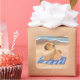 Un diseño dulce para la decoración y el desgaste de verano. La pequeña vaca está bronceándose en la playa con una expresión alegre en la cara.