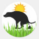 Añade un toque de humor y capricho a tus alrededores con estos curiosos perros que bailan en los pegatinas de hierba. Estos pegatinas graciosos y descarados presentan un ilustracion cómico de un perro en el acto de hacer sus negocios sobre un vibrante fondo verde de hierba.