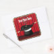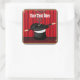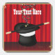 Ilustracion gráfico del gorra de un mago con fondo de cortina roja de la artista/diseñadora Charmaine Paulson en un pegatina personalizado. El pegatina tiene una plantilla de texto para su personalización. ©2013charmainepaulson