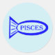 Esta hoja de pegatinas divertidos presenta un contorno de un pez azul con detalles en su interior. También hay un texto que dice Pisces dentro del contorno del pez. Este diseño es ideal para personas con cumpleaños entre el 19 de febrero y el 20 de marzo.