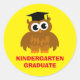 Pegatinas de pregrado en jardines de infancia con un búho lindo. pegatinas y sellos para sobres de personalizado para niños, padres, profesores de escuela, educadores, etc. Suministros y accesorios para la enseñanza preescolar, preescolar, gramática y primaria. Colores de personalizable. Gracioso diseño de animales para el bosque con gorra de propina de tassel.