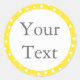 Estas etiquetas pegatinas personalizadas incluyen texto gris sobre un fondo blanco con un borde punteado de polka amarillo y blanco moderno. Puede usar estos pegatinas personalizados como etiquetas de regalo, etiquetas de favores matrimoniales o personalizares para cualquier otro evento u ocasión. El texto se puede personalizar en la página de pedido de producto. No olvide consultar los sobres personalizados, tarjetas, papel y otros productos canarios amarillos de nuestra tienda.