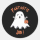 Un divertido y lindo personalizado pegatina de la recompensa de Halloween. El texto dice "¡Trabajo fantástico!" en letras naranjas. Manténgalo tal como está , o reemplace el texto con el suyo propio . © ArianeC Ilustraciones-Todos los derechos reservados
