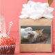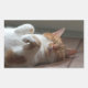 Fotografía de un lindo Gato durmiendo en su espalda, impresa en Pegatinas Rectangle. El gato se llama Farley y tiene 2 años y medio.