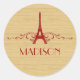 Elegantes y modas Pegatinas floridos franceses con un aspecto falso de madera y un diseño de la Torre Eiffel en rojo oscuro adornado con cascadas de elegantes remolinos. Este diseño elegante y elegante es fácil de personalizar con el texto personalizado de su elección. Haga clic en "Personalizar" para encontrar más opciones de personalización.