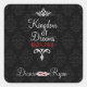 Pegatina de bodas de destino con acento fugaz d li en una oscura damasco negro