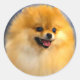 Pomeranian, un dulce y dorado color dorado, es retratado con un fondo azul en este retrato original.
