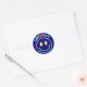 Pegatinas retro divertidos con estampado groovy encima de una cara en colores pastel brillantes. En un fondo azul brillante, que se puede cambiar o incluso añadir tu propio texto.